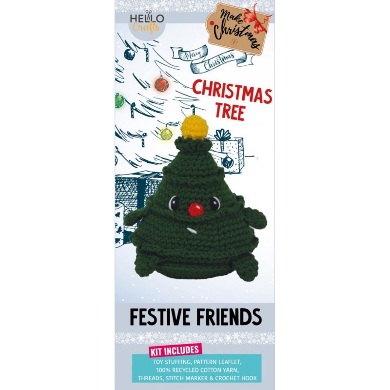 Holen Sie sich ein Stück Winterwunderland nach Hause mit dem Häkelset „Christmas Tree“ aus der Festive Friends-Serie. Alles was Sie brauchen ist enthalten: Baumwollgarn, eine 3,5 mm Häkelnadel, Füllmaterial und eine Anleitung in Terminologie. Ideal für Häkel-Fans, die einen entspannten Bastelnachmittag genießen möchten und später stolz ihre selbstgemachte Baum-Amigurumi präsentieren wollen.